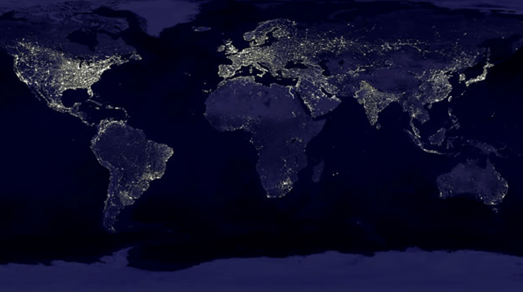 First let’s take a look at NASA’s composite photo of the “Earth at Night”. Remember the dark areas of the Planet as you then scroll through the next few graphs of economic activity and energy.