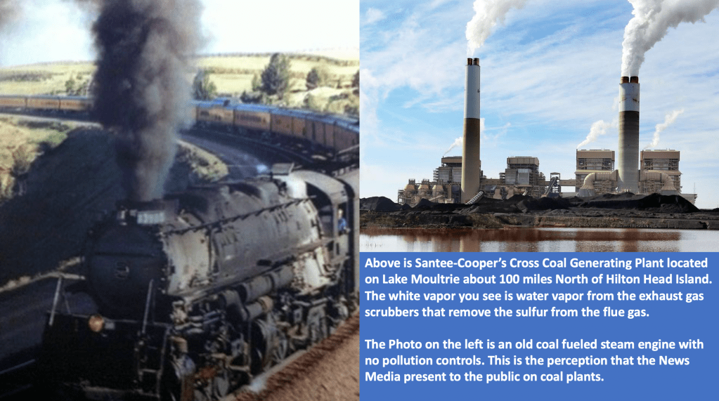 The EPA Chart of clean air trends clearly shows American Industry’s good and responsible progress in pollution reduction. That is not what you will see in the mainstream media. The illustration below attempts to compare the perception of “Dirty American Coal Plants” with reality.