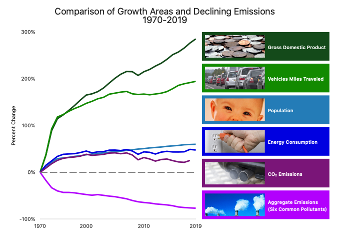 Before the Pandemic in December 2019, America’s economy was thriving and manufacturing within our borders was increasing. Yes, President Trump’s policies of reducing regulations was working not only for increasing economic prosperity and jobs, but also resulting in continued clean air trends.