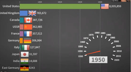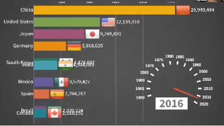 In 1950, China was not a significant manufacturer of automobiles when compared to other nations. I took screen shots of a you tube video presented by USCB which showed the changing world manufacturing of automobiles from 1950-2020. This video is on you tube.