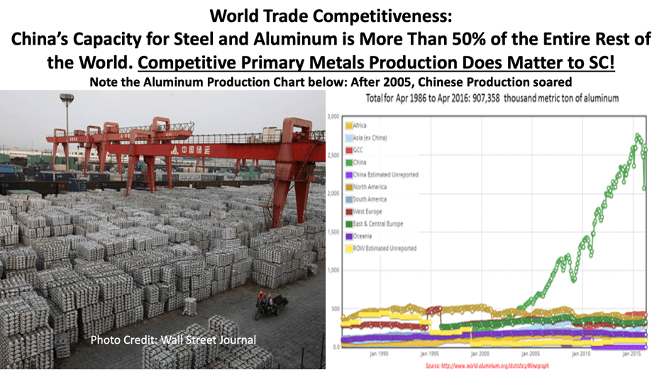 It is not only steel and aluminum that China has exceeded all other world manufacturers. It is also Pharmaceuticals as we learned during the recent Pandemic. It is also Rare earth minerals and electronics as used in modern electronic devices. Manufacturing by U.S.A. companies also funds R&D which is then owned by the inventing company. If manufacturing is lost in America much of the funding for higher education as well as R&D will be compromised.
