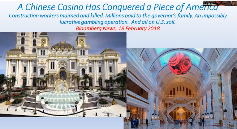 Bloomberg News of Casino built in Saipan by China: https://www.bloomberg.com/news/features/2018-02-15/a-chinese-company-has-conquered-a-piece-of-america