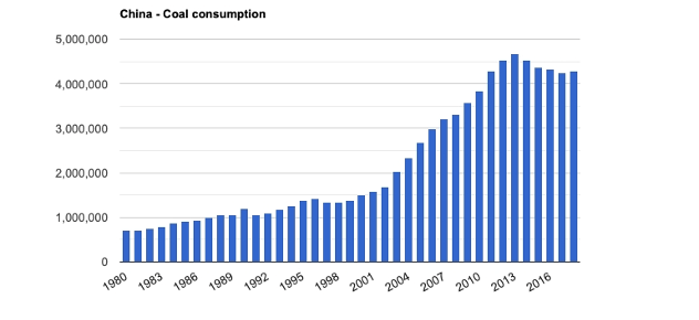 Usually, I write about energy and electric power generation. That was my career for 50+ years. The observation I made during those years of world travel was that economic prosperity and energy use usually parallel each other. That is, it takes a lot of energy to create manufacturing jobs and to produce primary metals. China after entering the WTO then began building new power plants at an incredible pace. They built more coal fueled power generation capacity in twenty years than America did in the preceding 100 years. This is not an exaggeration. The coal consumption data as compiled by the EIA (U.S. Department of Energy, Energy Information Administration) is copied below. China uses about 5X America’s coal consumption for electric power generation.