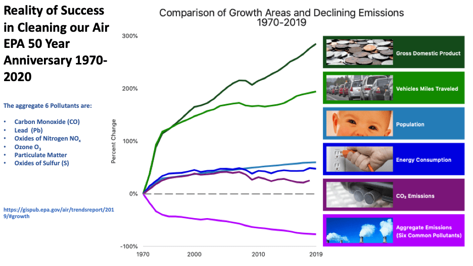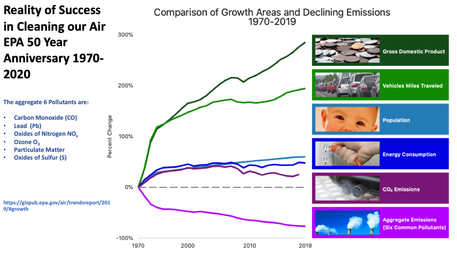 We have come a long way and our air is the cleanest it has ever been. Check the EPA 50 year progress graph above:
