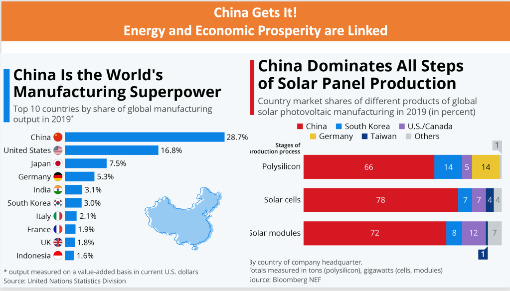 I will close with the fact that according to a report I saw in S&P Global, China has the four largest banks in the world. The relationship of energy use and economic prosperity cannot be denied. China built more power generation in twenty years than America did since Thomas Edison’s first Pearl Street Station was commissioned.