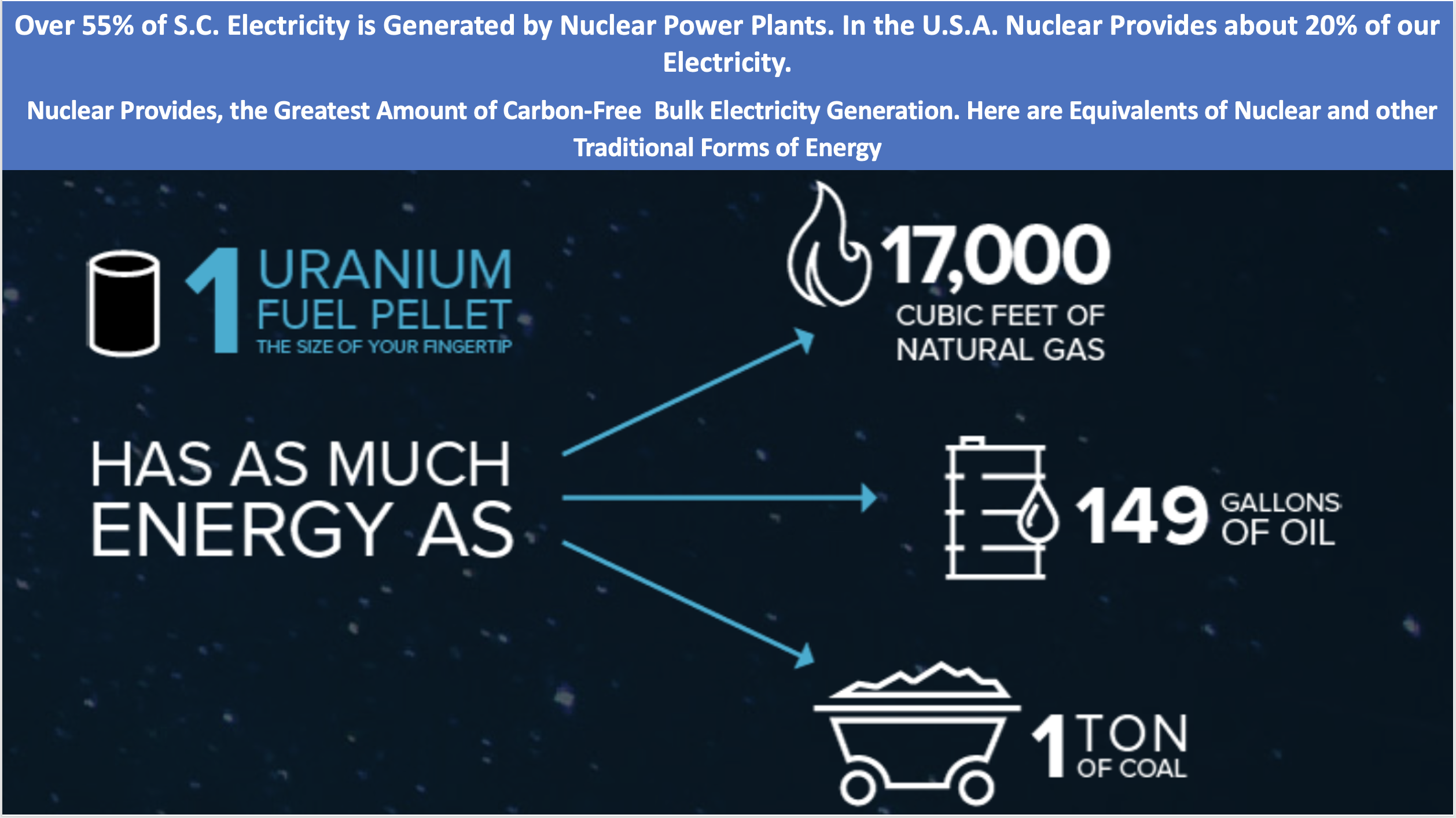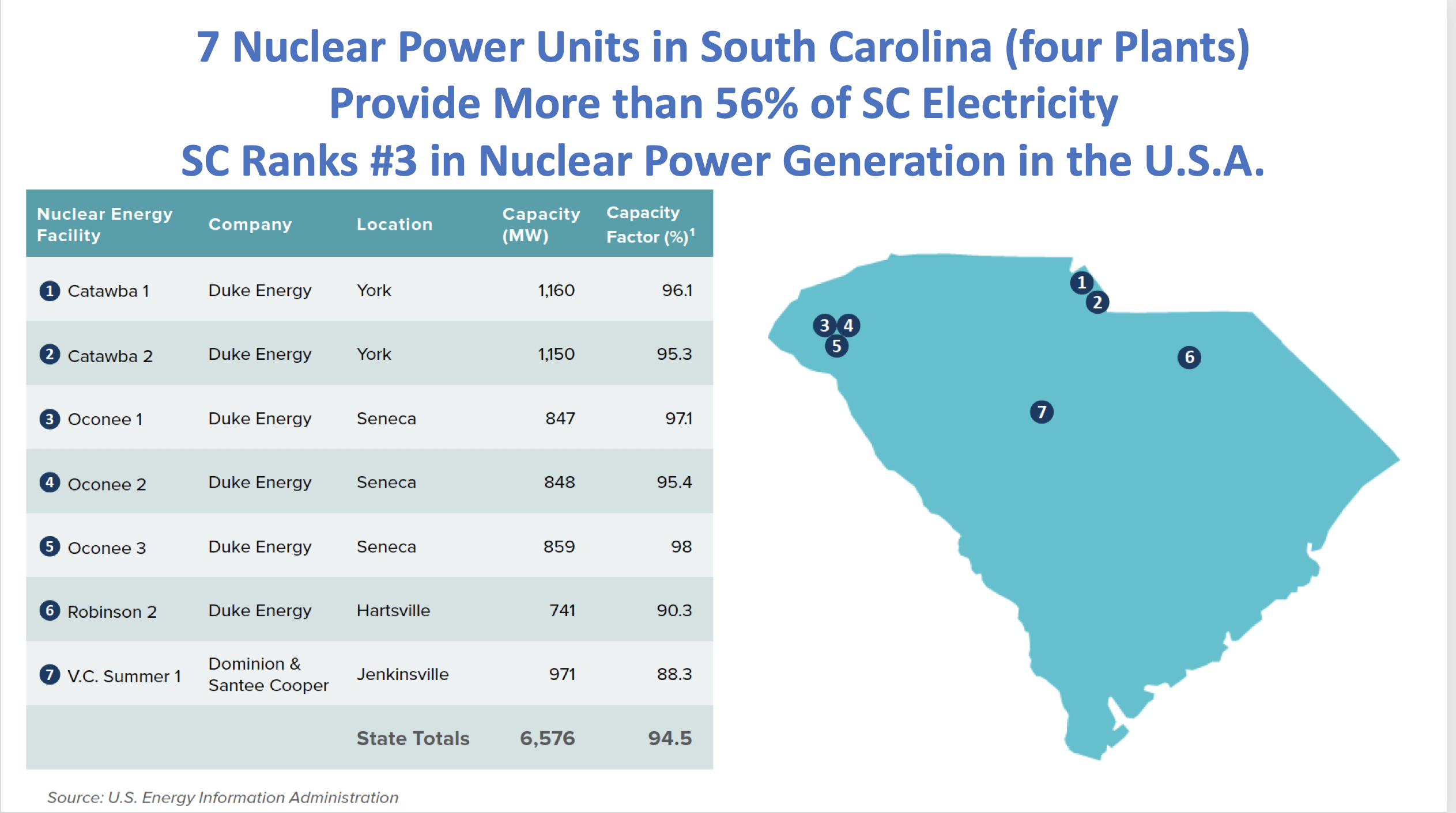 Currently and at least through 2030, over 50% of South Carolina’s electricity will come from nuclear power generation.