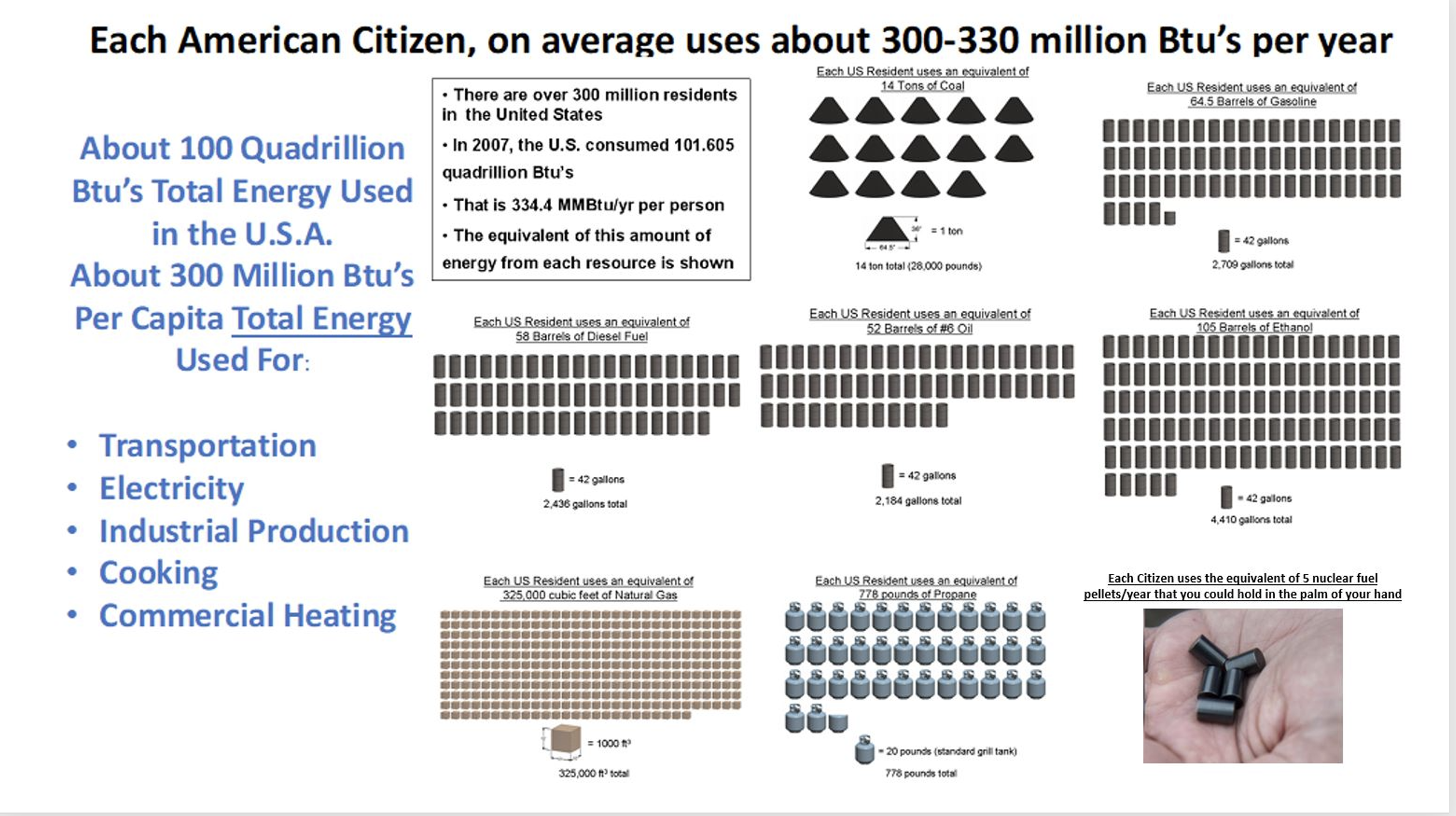 - America has used about 100 Quadrillion Btu’s annually for decades and to preserve our high quality of life, will continue to require 100 Quadrillion+ Btu’s each year into the future