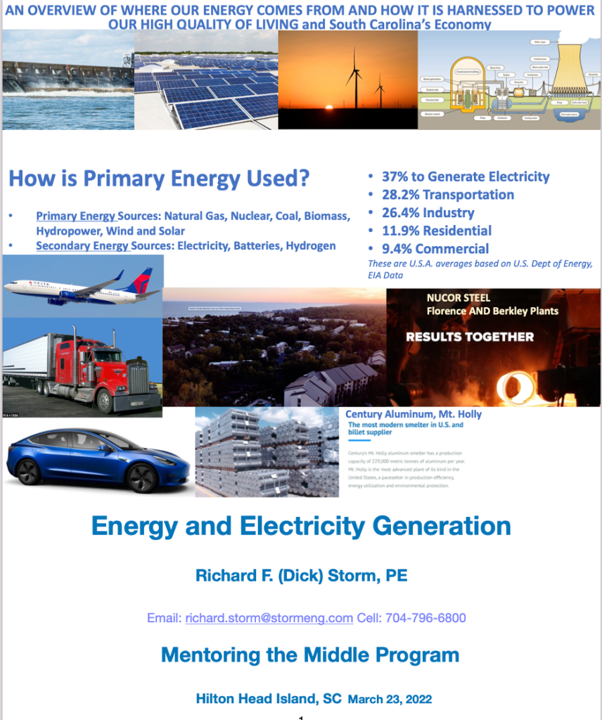 All of us who have been employed in the supply chain of producing energy understand the rarity of energy savvy people we meet who are not or have not been closely involved with our industry. So, when an opportunity to present a short class on energy and electricity generation came up at our local Middle School, I accepted the invitation. Here are some of the slides I will use for this group of 8th Graders.