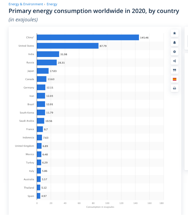 - Statista.com for ranking of energy use by country: https://www.statista.com/statistics/263455/primary-energy-consumption-of-selected-countries/