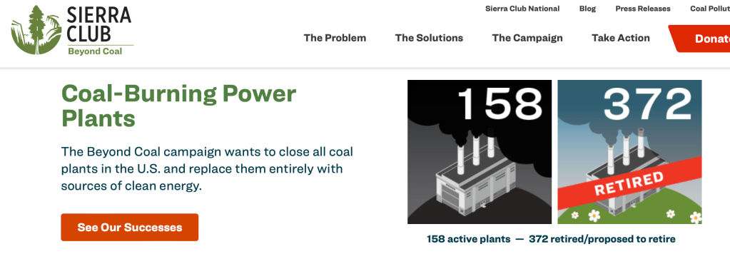 - Sierra Club website for “Beyond Coal and gas” : https://coal.sierraclub.org