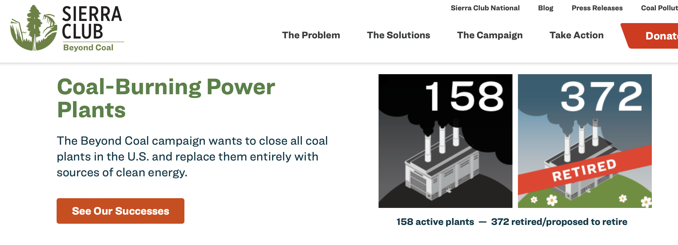 - Sierra Club website for “Beyond Coal and gas” : https://coal.sierraclub.org