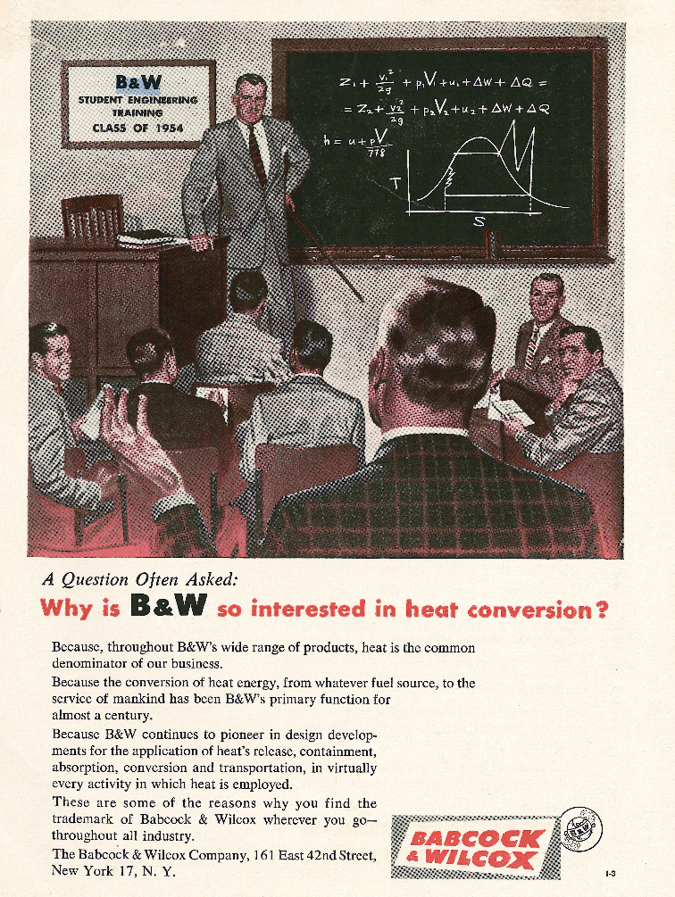 The point of the graphic was to show how the progression of the perceptions of coal power by the public from the time line of 1950 to 2008. In the 1950’s, 1960’s and 1970’s “Living Better Electrically” was the theme promoted by the MSM and in public schools. Also, the funding for TV, magazines and newspaper advertising was generous by such Fortune 500 companies as General Electric, Westinghouse, Allis-Chalmers, Babcock and Wilcox, Combustion Engineering and many more. One of my favorites by B&W is shown below.