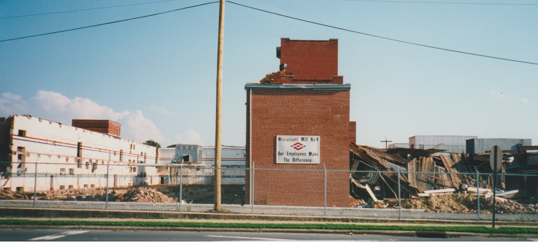 Do you remember the Quote uttered by Ross Perot in 1992. “Giant Sucking Sound” when referring to NAFTA and his prophetic forecast of massive American job losses? I do. Let me explain the photo below. It is a picture of the partial demolition of Wiscassett Mills, Mill No. 4 in Albemarle, NC. If you look closely the sign on the remaining brick wall, near the previous employee entry gate States: “Our Employees Make the Difference.” Yes, the Albemarle employees of Wiscassett Mills did make a difference, they had been reliable, loyal, hard-working and productive for nearly 100 years. Wiscassett Mills began operations about 1898. Many future military, industry and business leaders were sent to college and nationwide recognition from paychecks earned in these textile mills.