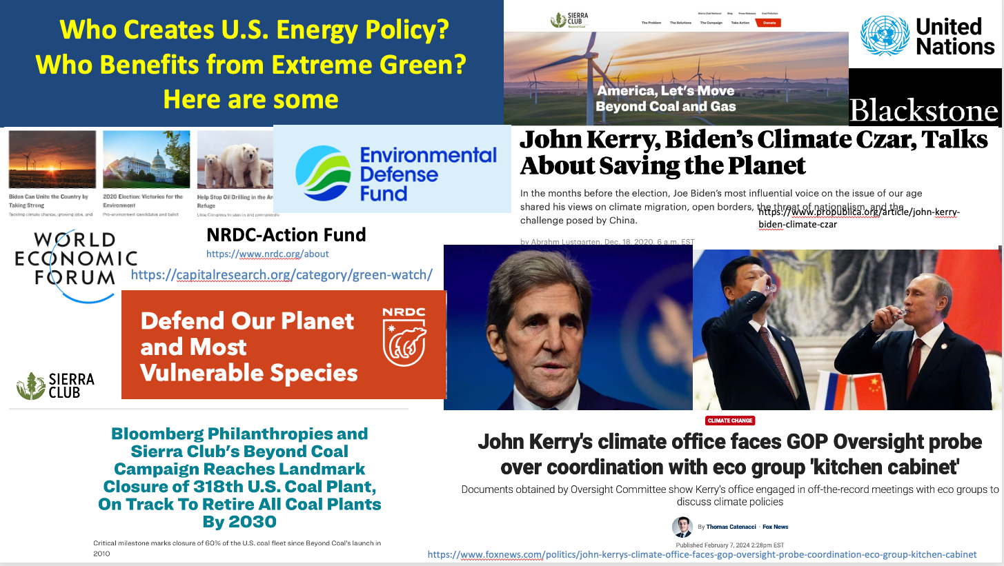 - China Influence of U.S. Green Groups and U.S. Environmental Policy, Capital Research Center video: https://capitalresearch.org/article/how-china-designed-american-environmental-policy/