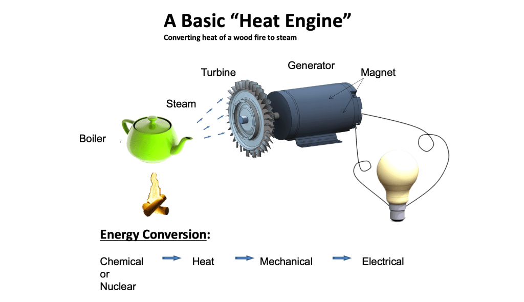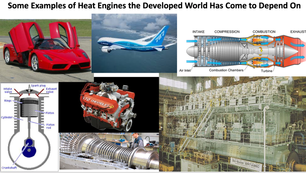 Worth remembering is our high school science class definition of a Btu. A British Thermal Unit is the amount of heat that will raise one pound of water (about a pint) one degree Fahrenheit. Another equivalence that is important is that if each Btu was converted into mechanical energy at 100% efficiency, then one Btu=778 Foot pound of work. This is where the term “Heat Engines” comes in. “Heat Engines” sometimes called “Prime Movers” are at the root of a thriving modern economy. Thus, the government measures and reports “Quadrillion Btu’s” as a measure of America’s and the world’s energy production and consumption.