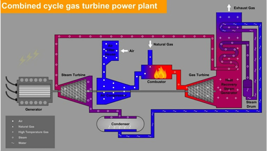 - High Efficiency natural gas generating plants that use Gas Turbines with heat recovery and a steam turbine topping cycle. These plants called Gas Turbine, Combined Cycle are far more efficient than coal plants. G-E, Siemens and Mitsubishi and more manufacturers around the world, build these plant components like they produce jet engines…assembly line style. Low cost and manufacturing that can be done anywhere from Charlotte to Hanoi to China… The components for one of the G-E GTCC plants that I am familiar with, were manufactured in locations all over the world.